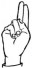 На ћирилици написано БУДИМИР ДУРКАЛИЋ састоји се из 15 слова [?]. Исписано ћириличном једноручном азбуком за глувонеме: